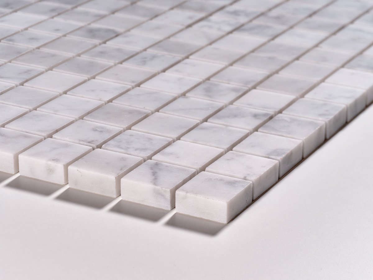 Il mosaico Bianco Carrara con finitura levigata opaca dona un’eleganza sobria e raffinata agli ambienti interni. Le sue tessere regolari esaltano la purezza del marmo e la naturale luminosità della pietra, rendendolo ideale per pavimenti e rivestimenti di pregio.
