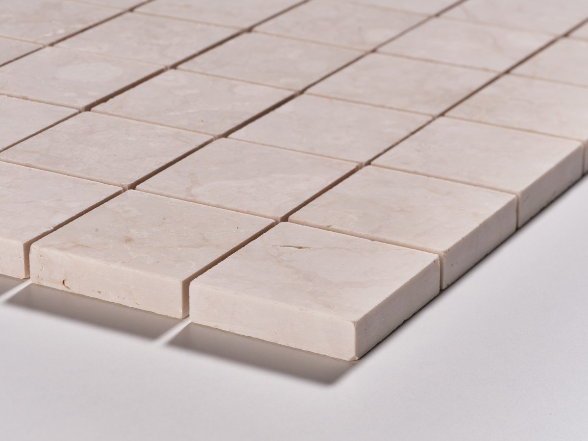 Il mosaico in Botticino levigato opaco porta nelle superfici il calore e la naturale eleganza del marmo beige. Le sue tonalità morbide e armoniose lo rendono ideale per creare ambienti raffinati e luminosi, in grado di adattarsi a diversi stili d’arredo.