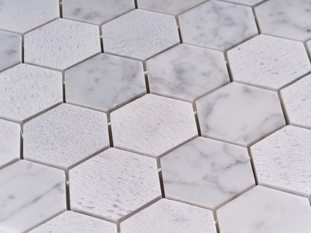 LINEA ESAGONALE Bianco Carrara Levigato Opaco Matt – Sabbiato – Graffiato