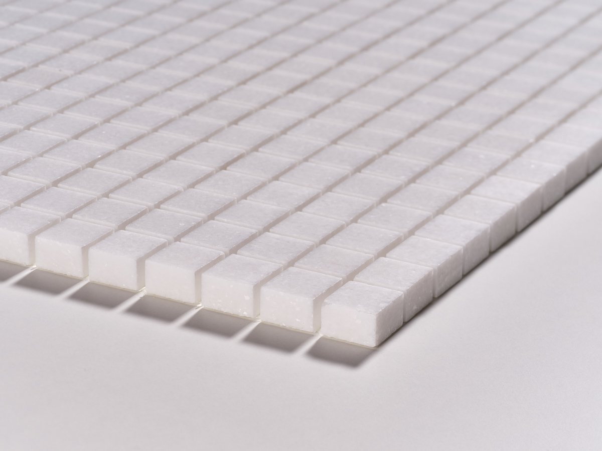 Il mosaico Bianco Thassos lucido rappresenta una delle espressioni più pure e luminose del marmo naturale. La sua tonalità bianca candida riflette la luce in modo straordinario, donando agli ambienti un senso di ampiezza e raffinatezza unica.