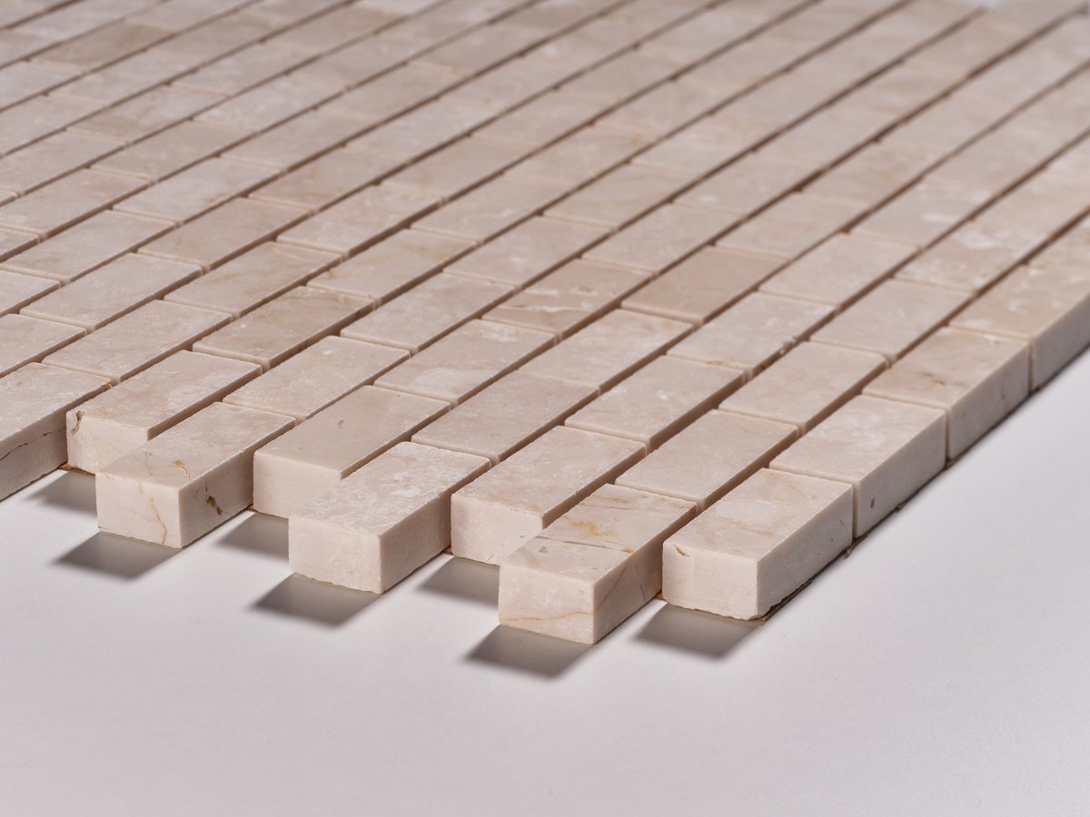 Il mosaico Botticino lucido si distingue per le sue tonalità calde e avvolgenti, capaci di portare armonia e raffinatezza in ogni spazio interno. Le tessere rettangolari creano un effetto visivo dinamico ed elegante, ideale per pavimenti e rivestimenti. Un materiale che unisce la tradizione del marmo alla modernità del design, perfetto per chi desidera stile e qualità senza tempo.