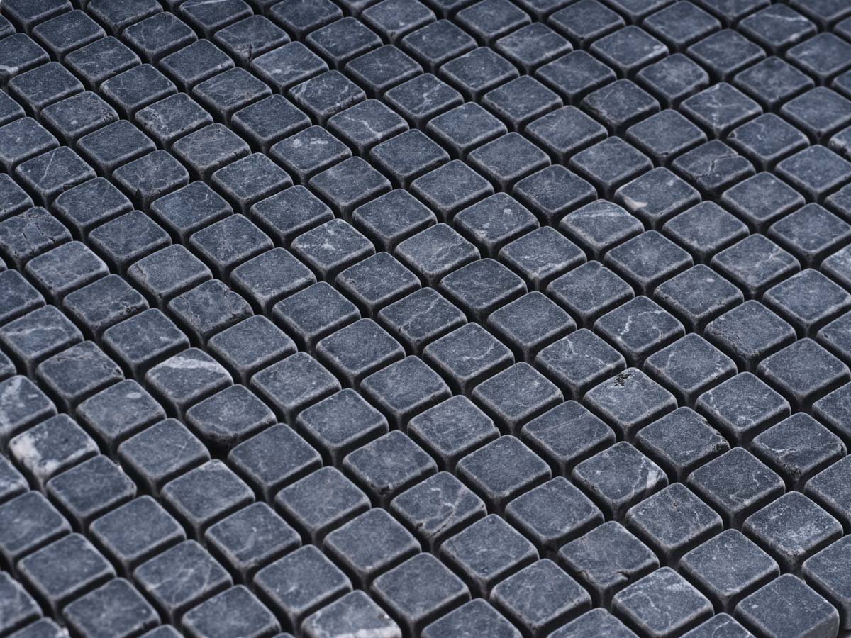 Il mosaico in Nero Marquina anticati burattato incarna l’eleganza senza tempo del marmo nero, arricchito da venature bianche naturali che lo rendono unico. La superficie anticata conferisce un tocco autentico e raffinato, perfetto per ambienti dal carattere deciso.