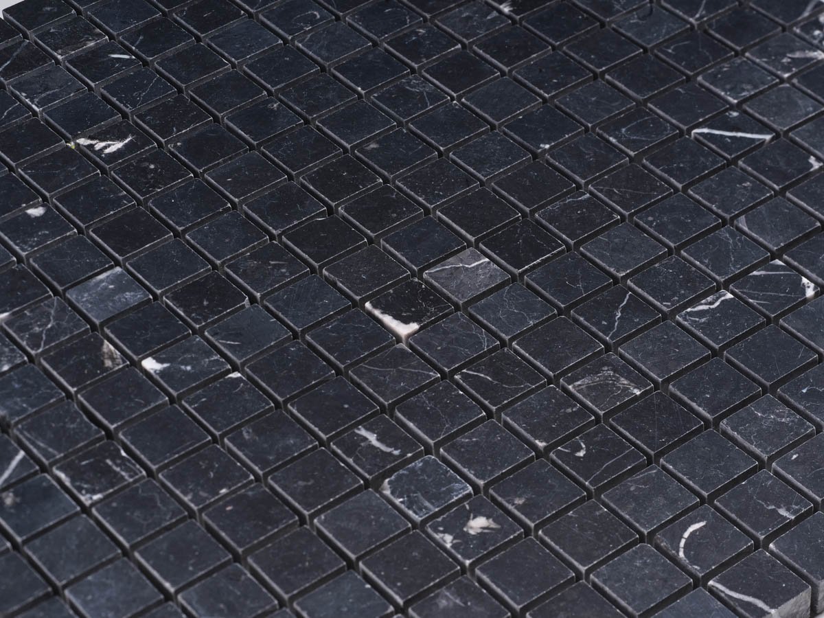 Il mosaico in Nero Marquina levigato opaco incarna l’eleganza senza tempo del marmo nero con le sue tipiche venature bianche, capaci di creare un affascinante contrasto visivo. Le tessere quadrate e compatte offrono uno stile moderno e deciso, trasformando ogni ambiente in uno spazio esclusivo.